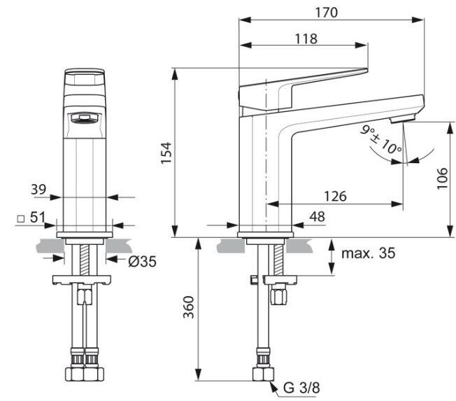 • Anschluss über flexible Druckschläuche G 3/8 (-) DVGW W270 zugelassen