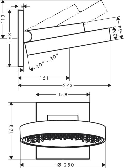 • Kugelgelenk: Kopfbrause im Winkel (2 x 5°) verstellbar